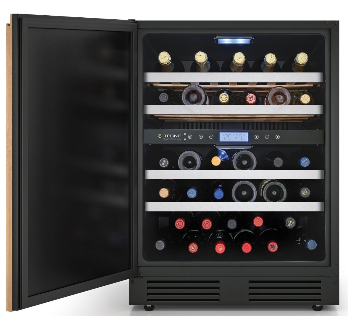 Capacidade: 136 litros / 43 garrafas (750 ml tipo Bordeaux)