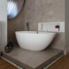 Ideal para dois, ampla a sós. Para quem gosta de quebrar paradigmas e inovar ao projetar ambientes, unindo design, funcionalidade e requinte, a banheira Angra é o investimento perfeito. Espaçosa, moderna e ergonômica, é a escolha de renomadas personalidades, empreendimentos e profissionais por garantir relaxamento, bem-estar e um conforto digno de SPA. Os materiais das banheiras Sabbia carregam a característica de serem higiênicos e não porosos. Não por acaso, as banheiras de imersão são as preferidas nos hotéis e SPAs Brasil afora.