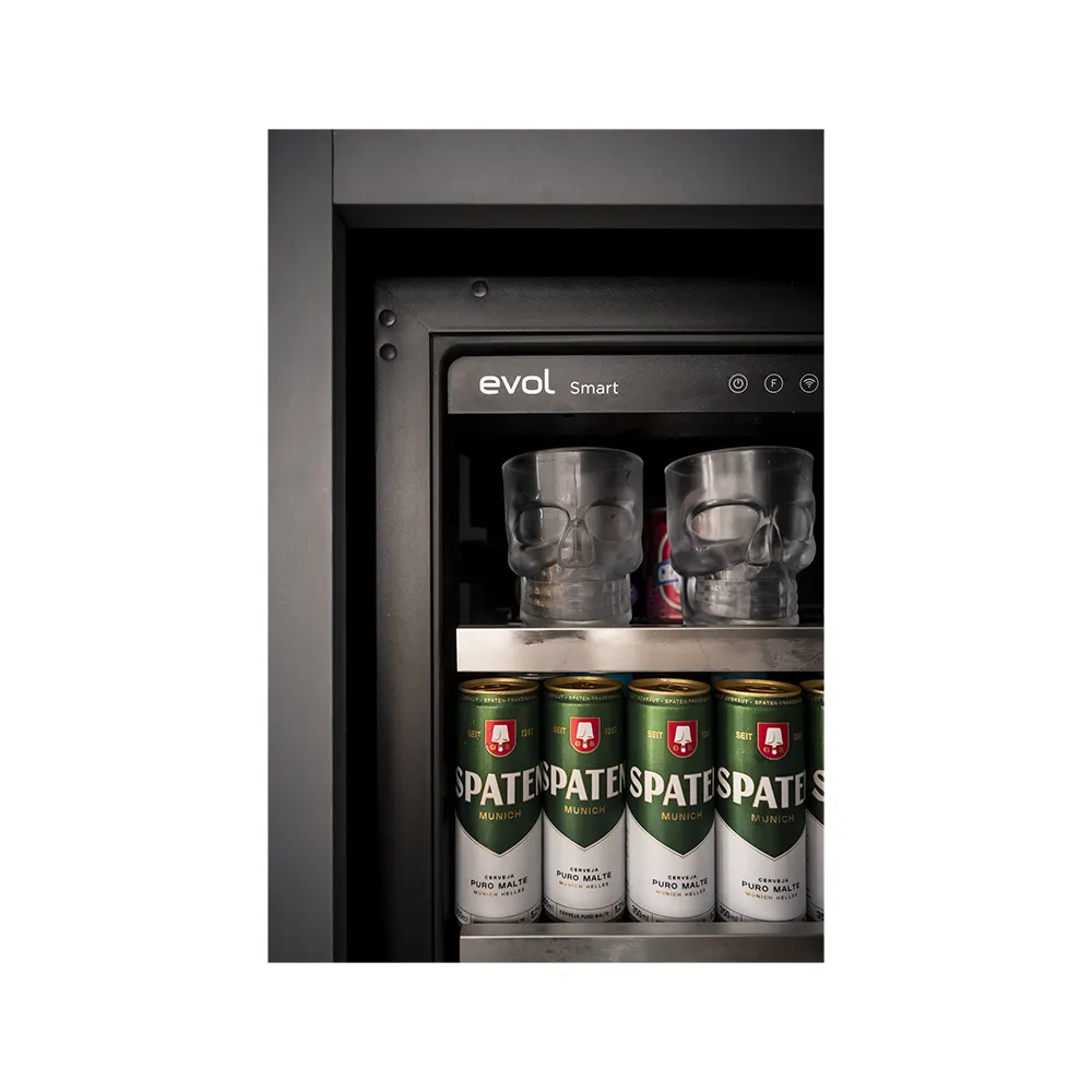 Com um moderno painel touch visível através da porta de vidro, a Cervejeira Evol ainda conta com LEDs brancas na parte superior interna que criam uma iluminação uniforme sem gerar calor, além de garantir uma ótima visualização das garrafas. Essa cervejeira é Frost Free, ou seja, tem degelo Automático, um sistema avançado de refrigeração.