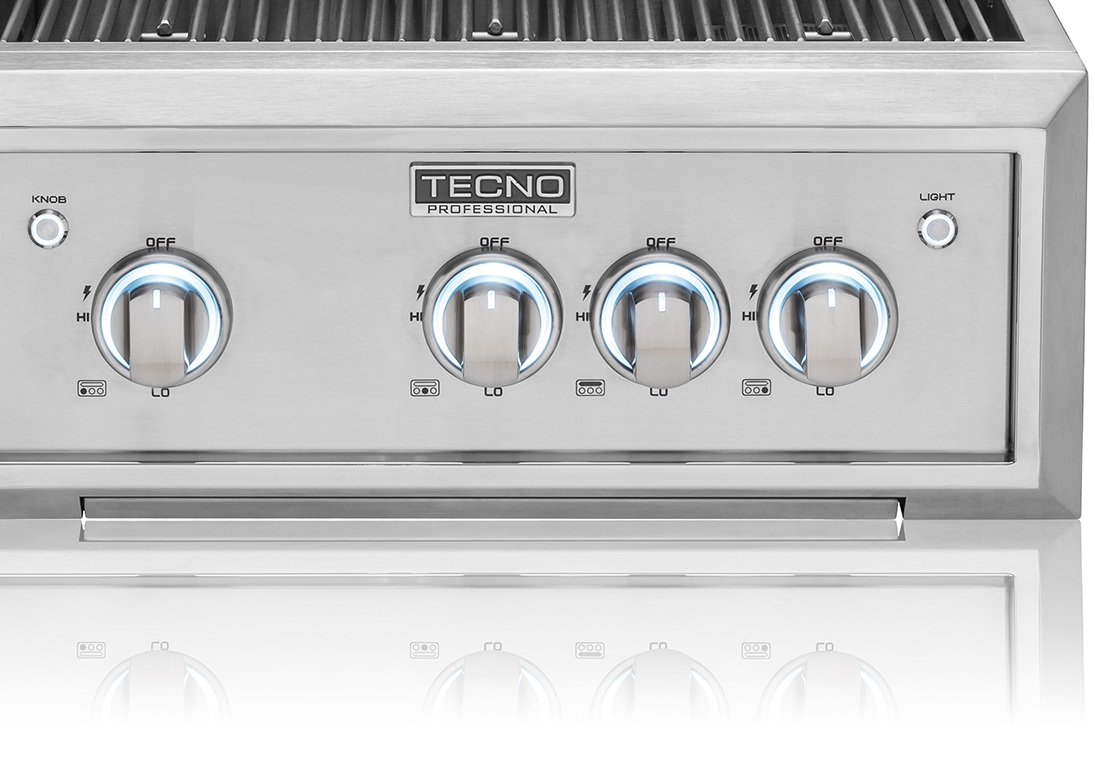 O design exclusivo Tecno se destaca pelo painel com bordas angulares, que agrega elegância ao ambiente. A churrasqueira conta ainda com bandeja coletora integrada e manípulos com iluminação em LED de duas cores, oferecendo mais controle e praticidade durante o uso.