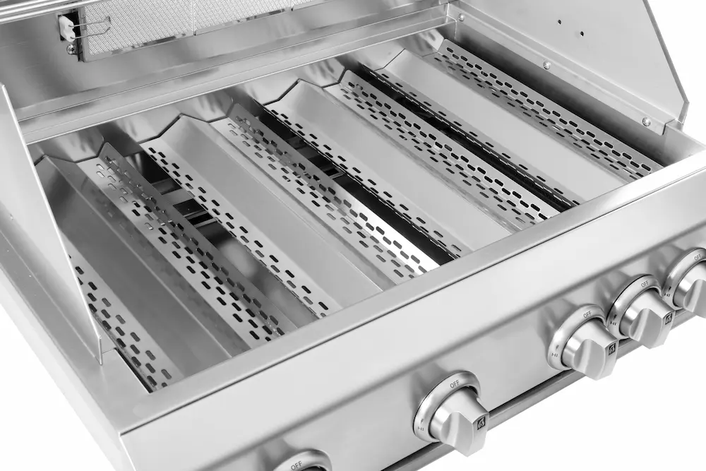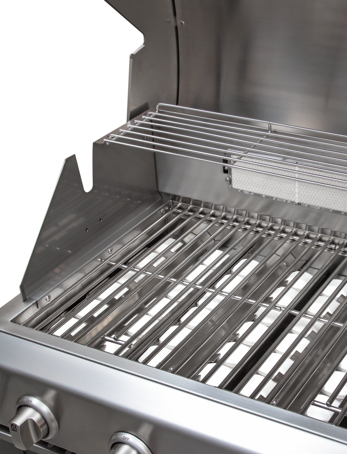 Características | Fabricada em Aço Inox 304 04 Queimadores Aço Inox 304 Grelha de Aço Inox Gás GLP Produto pode ser convertido para Gás GN Área de cozimento 70 x 46cm Medidor de Temperatura 60.000 BTU’s Consumo de Gás 1,316 kg/h Sistema de Ignição “Push Turn” Bandeja removível coletora de gordura frontal |