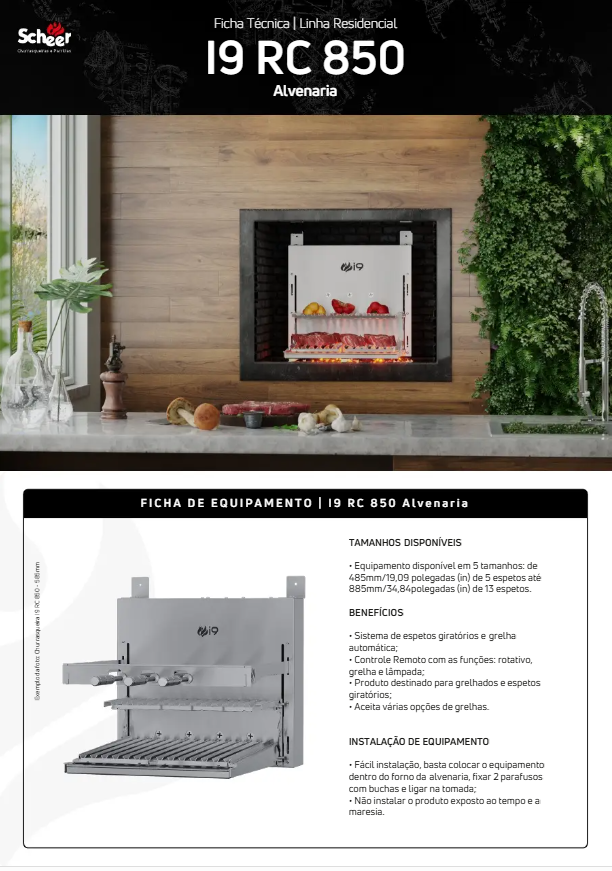 | Conteúdo da Embalagem | 01 Churrasqueira Cooktop I9RC850 785MM com Grelha Lift Grill Scheer 220V com acessórios 01 Manual de Instruções |