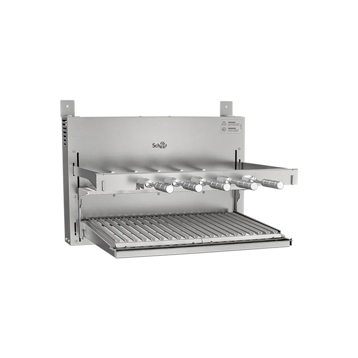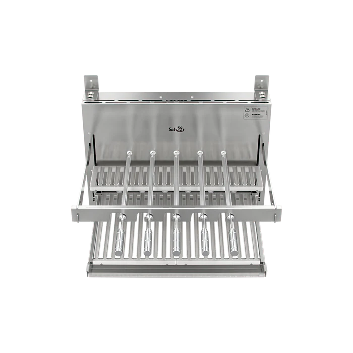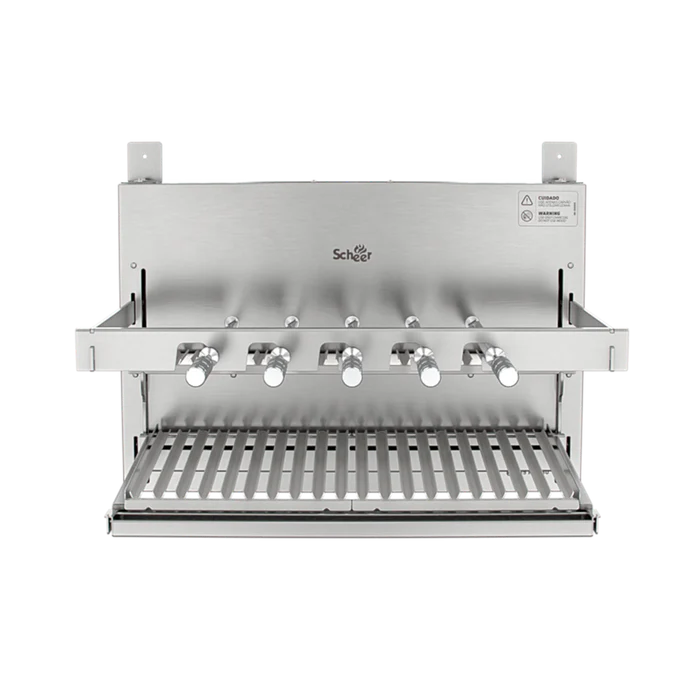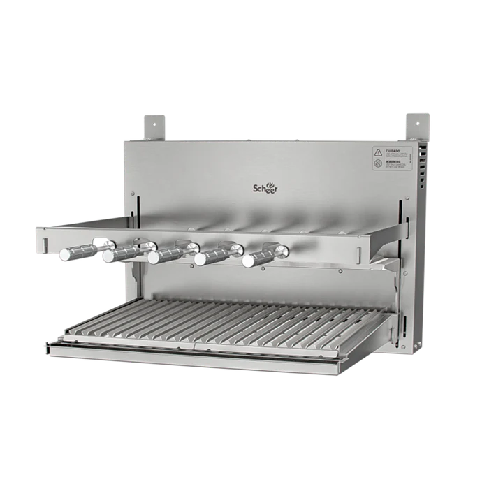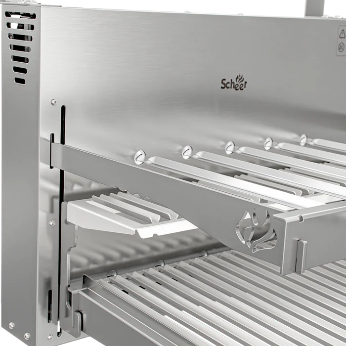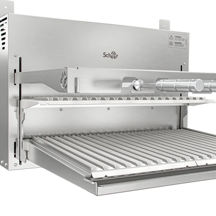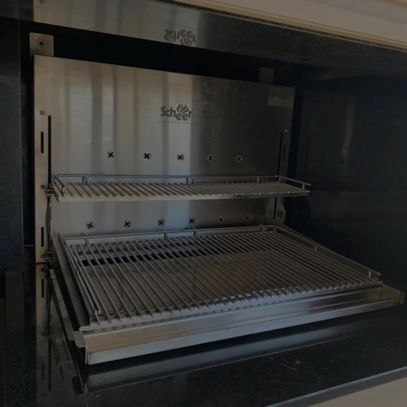 A linha I9 representa a evolução das churrasqueiras Scheer, com um visual mais elegante, clean e integrado ao ambiente. Conta com cantoneiras e braços removíveis, que facilitam tanto o uso quanto a adaptação ao espaço.