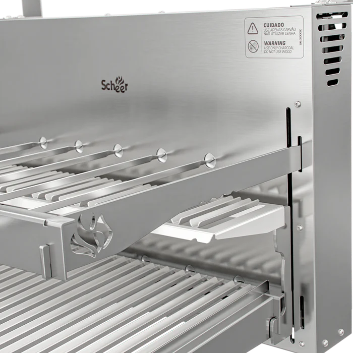 Equipada com grelha automatizada e espetos rotativos, ela permite preparar diferentes cortes com mais uniformidade e eficiência. Basta escolher a carne, ajustar a altura da grelha e controlar a rotação dos espetos por meio do controle remoto, deixando todo o processo muito mais simples.