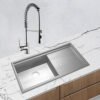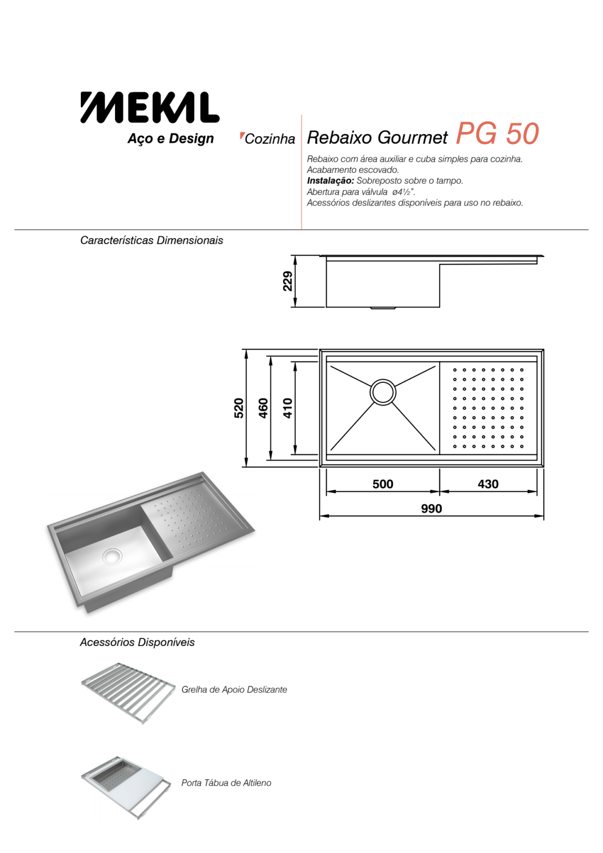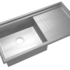 Este modelo oferece uma cuba com grande capacidade de volume e área para escorredor de pratos e talheres através de acessórios deslizantes.
