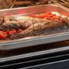 O sistema de calor ventilado permite assar receitas doces e salgadas simultaneamente, sem mistura de aromas. Já o grill infravermelho proporciona grelhados e gratinados com rapidez, controle preciso e menor emissão de fumaça.