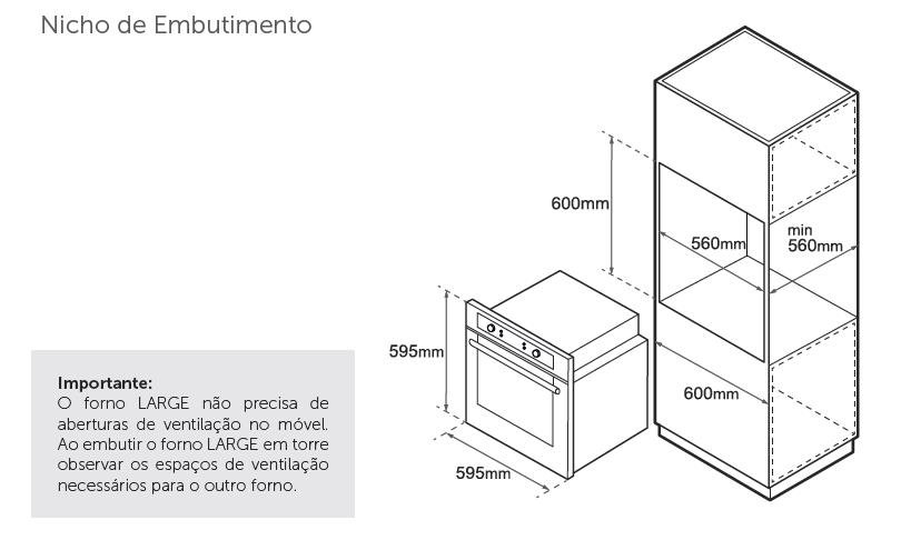 | Conteúdo da Embalagem | 01 Forno 67L 60cm Tecno