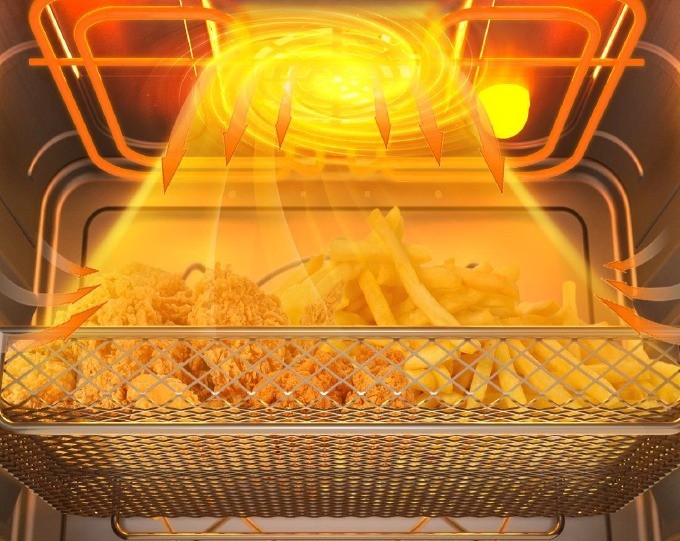 Forno elétrico com AirFry integrado e outras funções que assam e grelham com calor ventilado que irão lhe surpreender pela variedade de preparos com deliciosos resultados culinários!