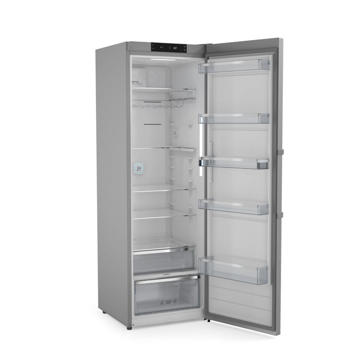 O Metal Cooling, presente na placa interna com revestimento metálico na parte posterior do gabinete, contribui para a manutenção da temperatura ideal dentro do refrigerador. E com o display digital na porta, você tem controle total das funções Holiday, para economia de energia, e Super Cool, para resfriamento rápido, tudo ao alcance das mãos.