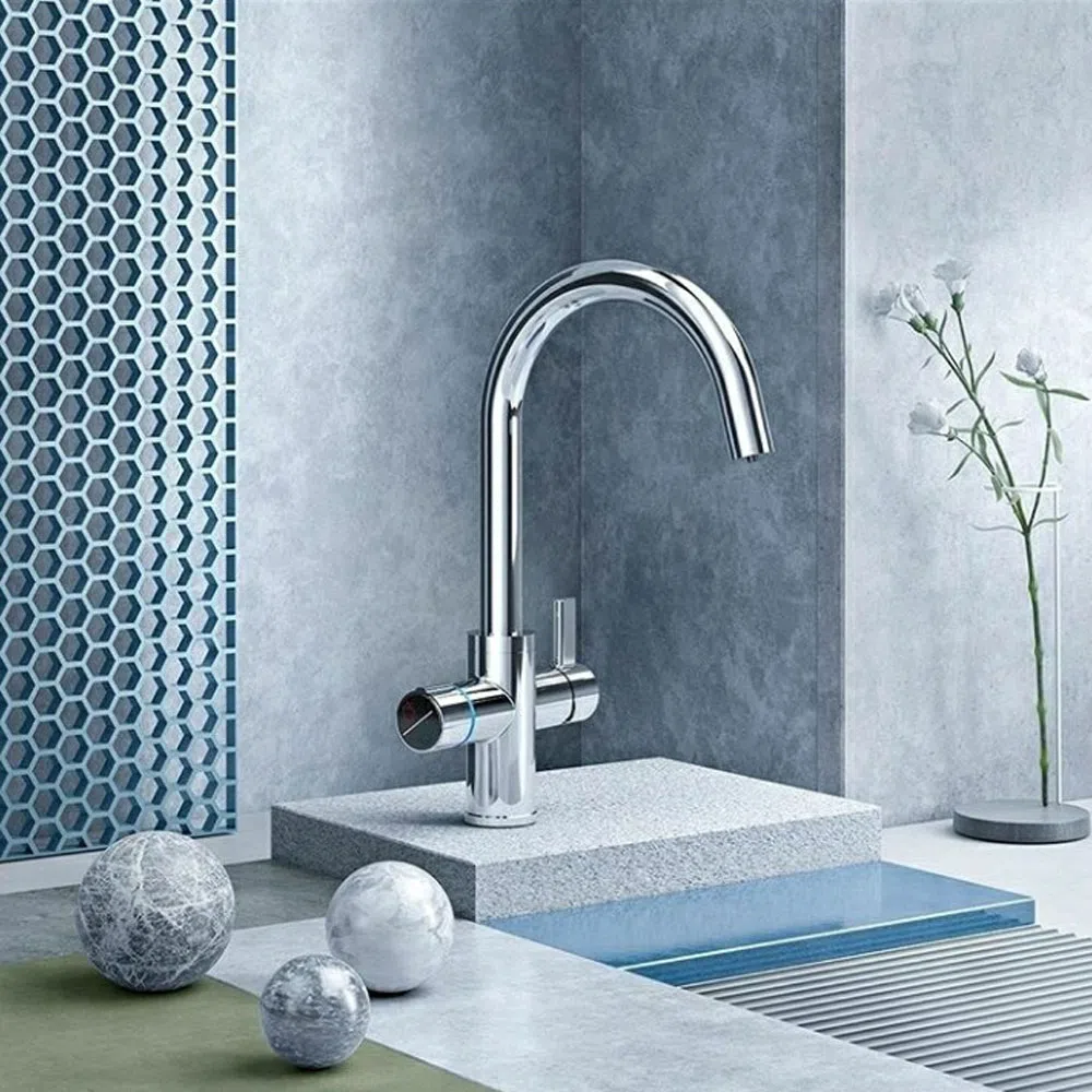 Inédito no mercado brasileiro, o monocomando para cozinhas da Linha Docol Pronto entrega, em uma única bica, as funções de um monocomando de cozinha e mais 3 versões diferentes de água ao toque de um único botão.