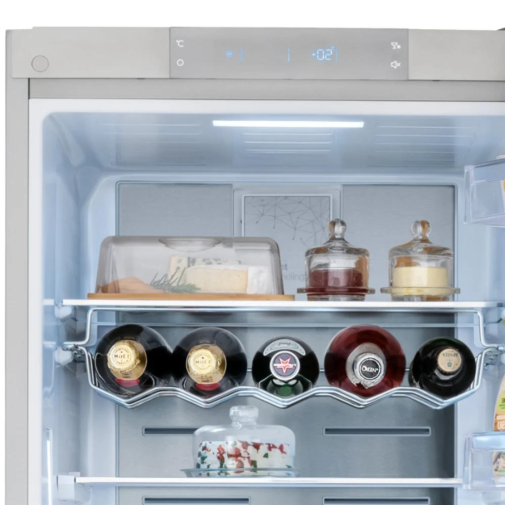 O compartimento refrigerado conta com uma gaveta especial a 0°C, perfeita para conservar carnes, peixes e vegetais com frescor prolongado.