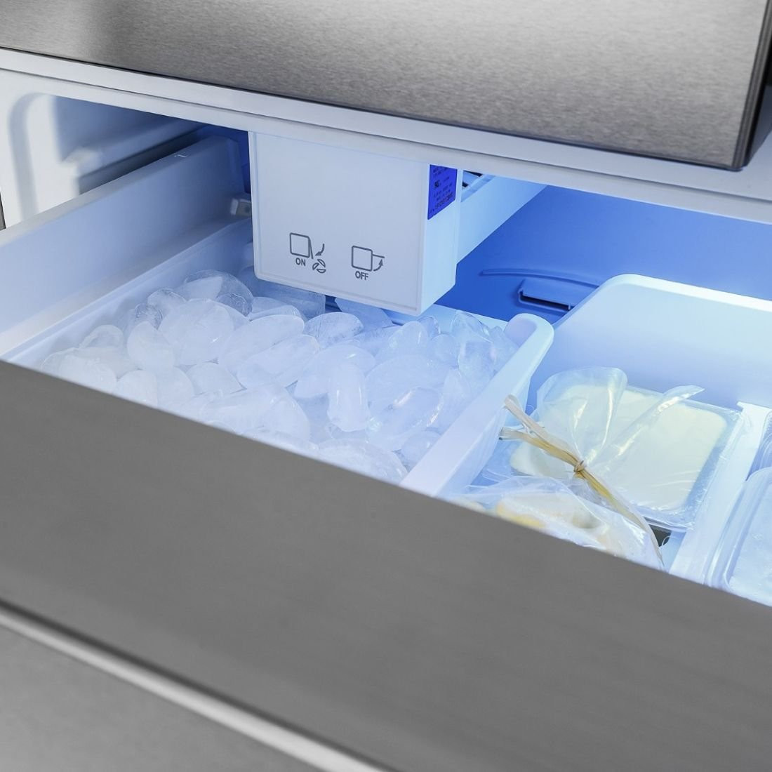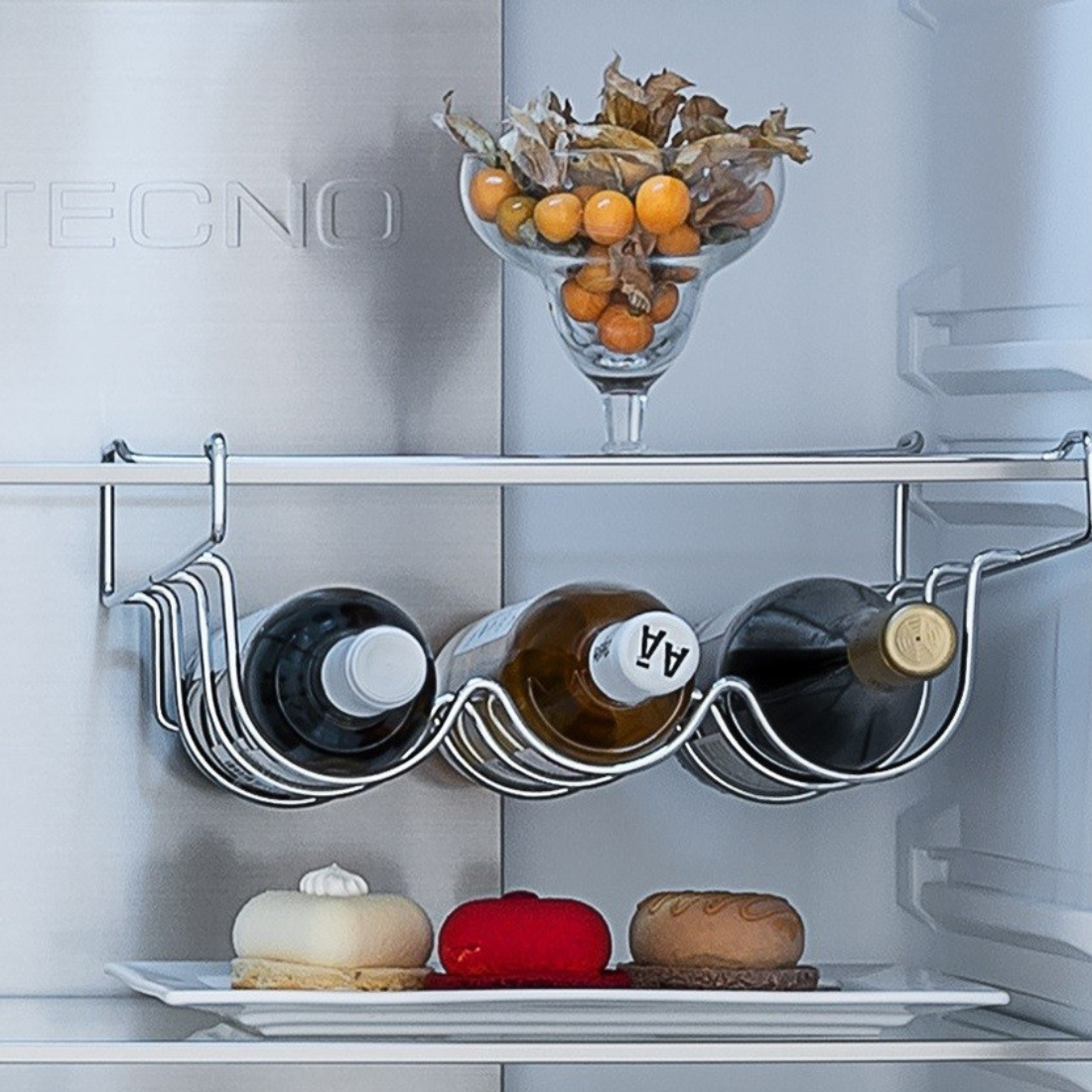 Equipado no compartimento refrigerado com uma gaveta 0 °C Flex Temp e uma gaveta Moist Zone para conservar melhor os sabores, texturas e nutrientes dos alimentos frescos. Seu amplo e requintado interior possui um rack de bebidas em aço cromado e é iluminado por LEDs presentes em todos os compartimentos sem gerar calor. Seu compressor com tecnologia Inverter oferece baixo nível de ruído de 45 dB, fundamental para proporcionar silêncio nos demais ambientes integrados à cozinha.